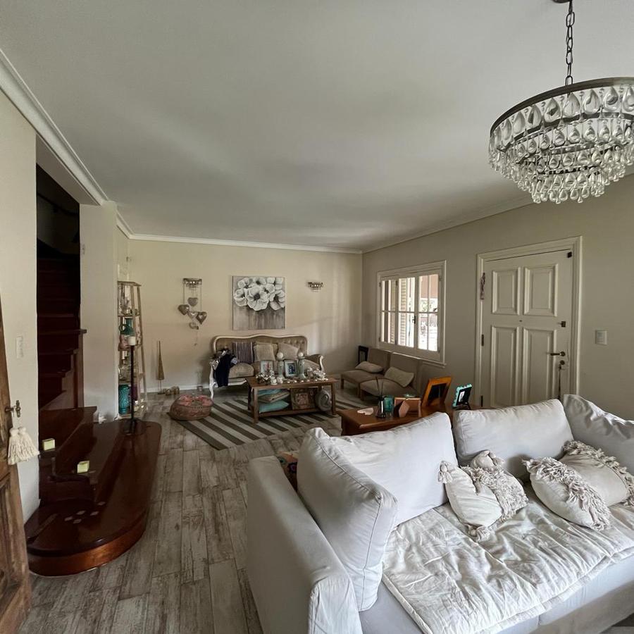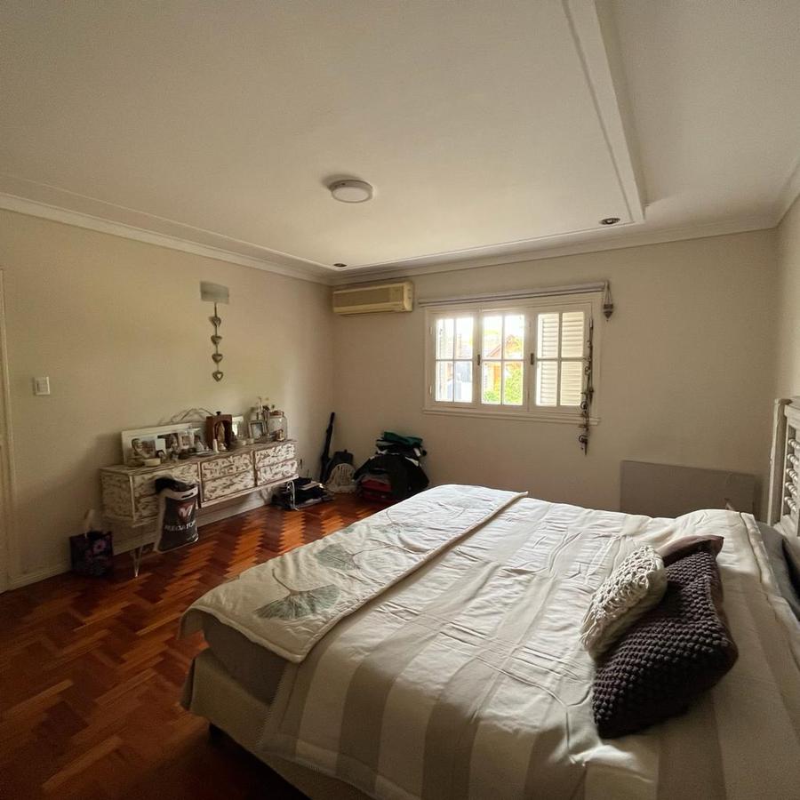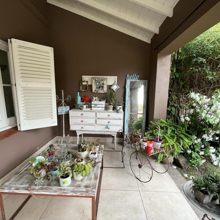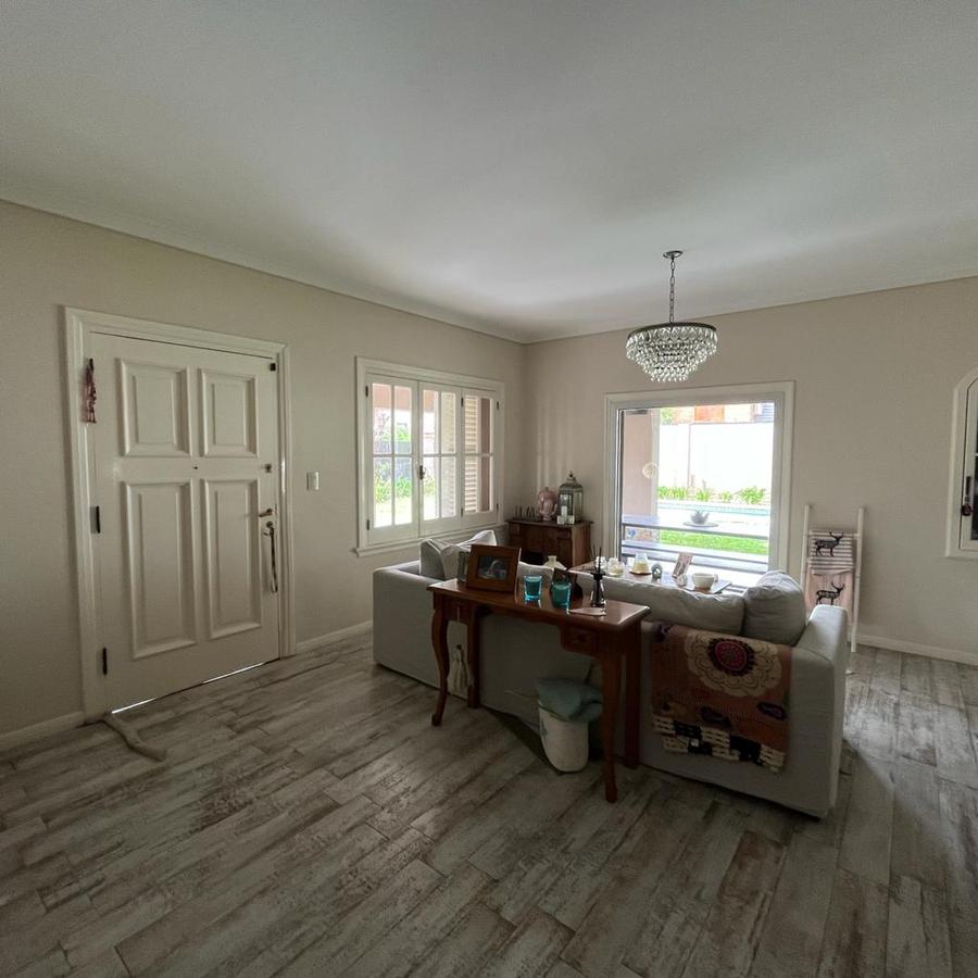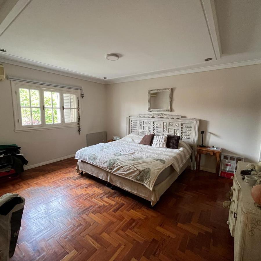 En planta Alta, Un hall distribuidor que deriva a la habitación principal en suite con ventana al frente piso de pinotea y Aire acondicionado. Este dormitorio cuenta con 2 vestidores, también dispone de 3 dormitorios mas 1 con vestidor y los 2 restantes con placard y un baño completo. En el exterior la finca cuenta con amplio parque galería cubierta y piscina con venecitas