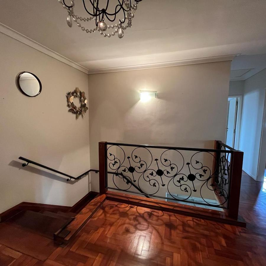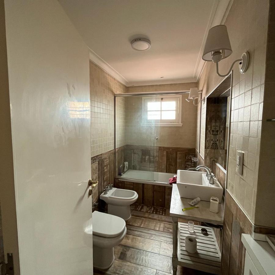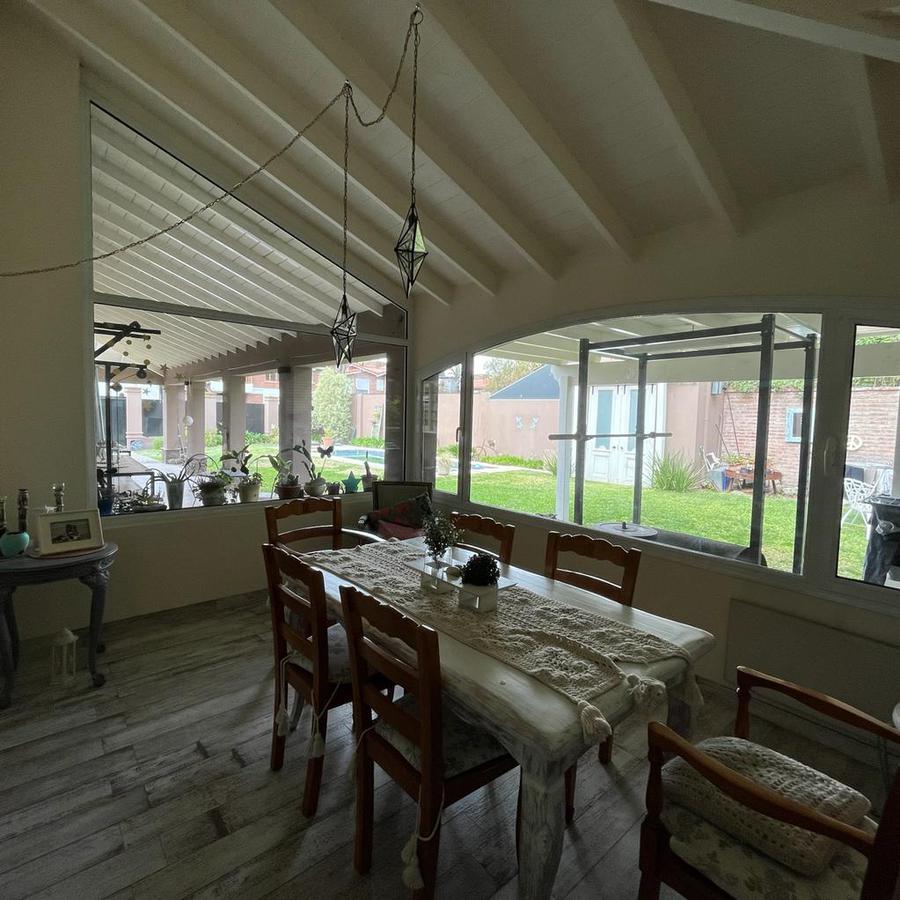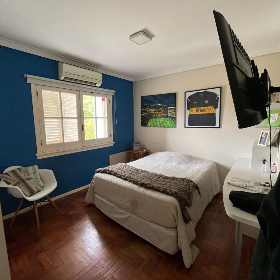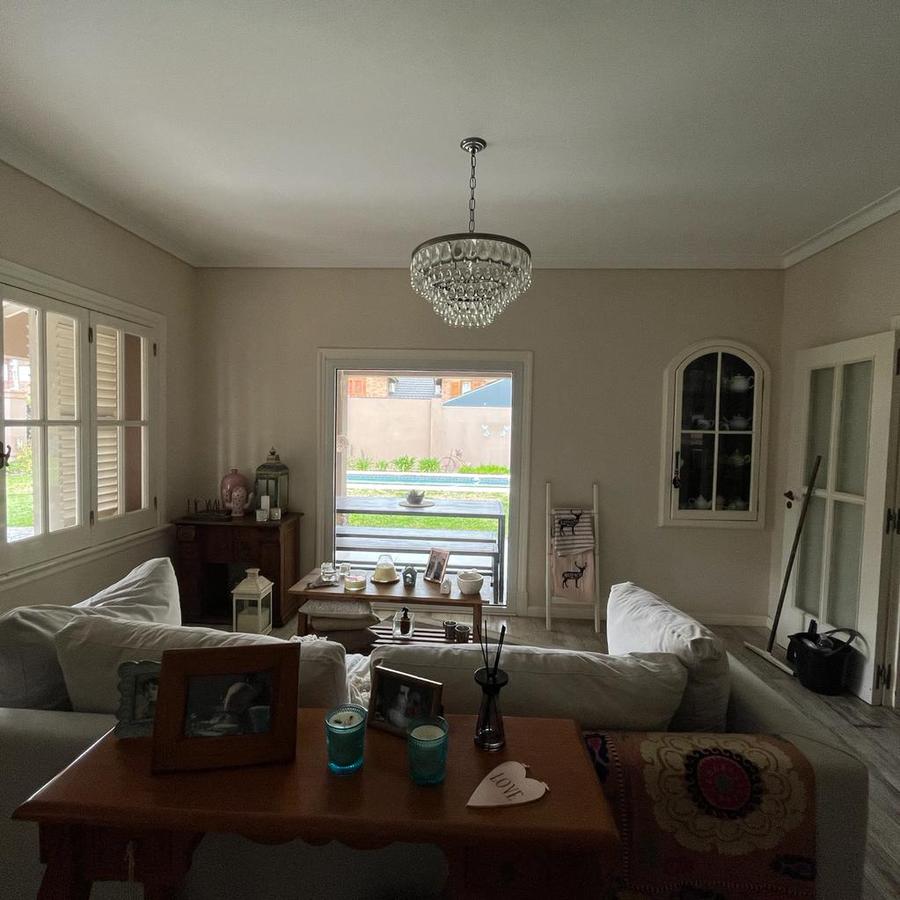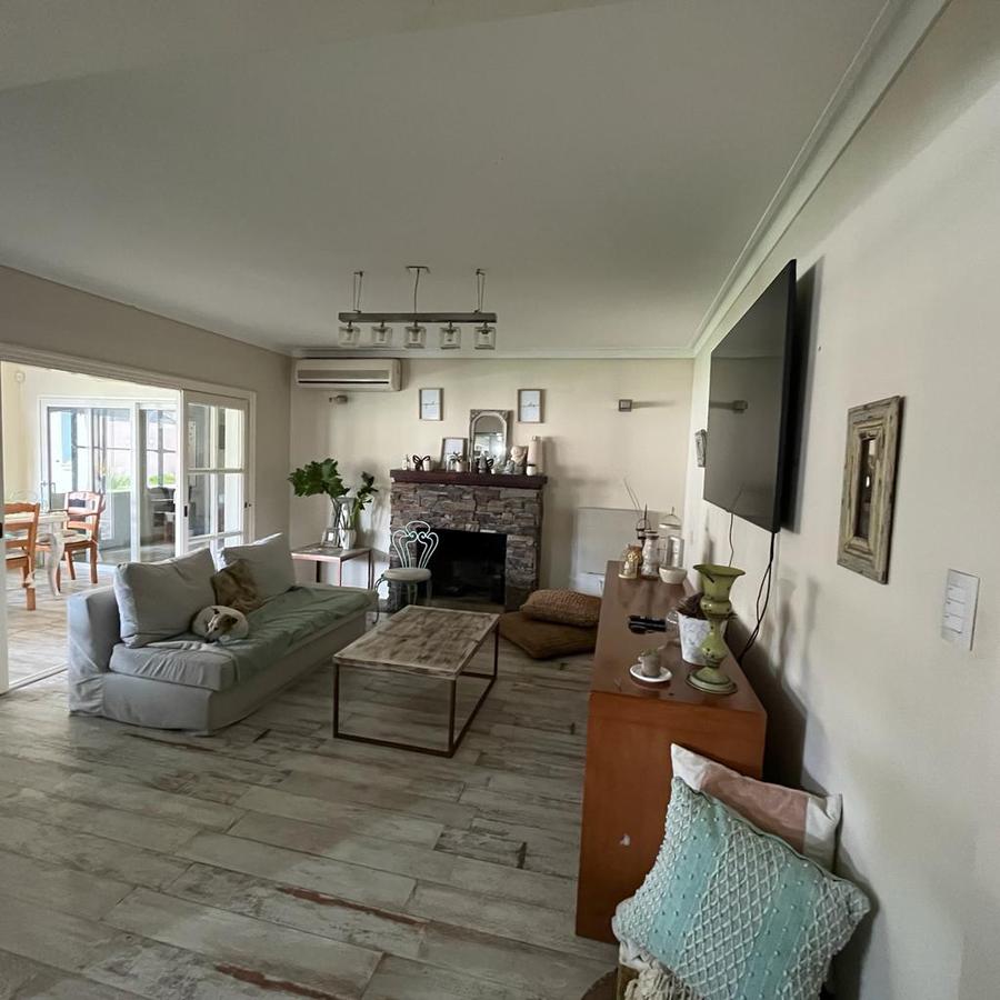 En planta Alta, Un hall distribuidor que deriva a la habitación principal en suite con ventana al frente piso de pinotea y Aire acondicionado. Este dormitorio cuenta con 2 vestidores, también dispone de 3 dormitorios mas 1 con vestidor y los 2 restantes con placard y un baño completo. En el exterior la finca cuenta con amplio parque galería cubierta y piscina con venecitas