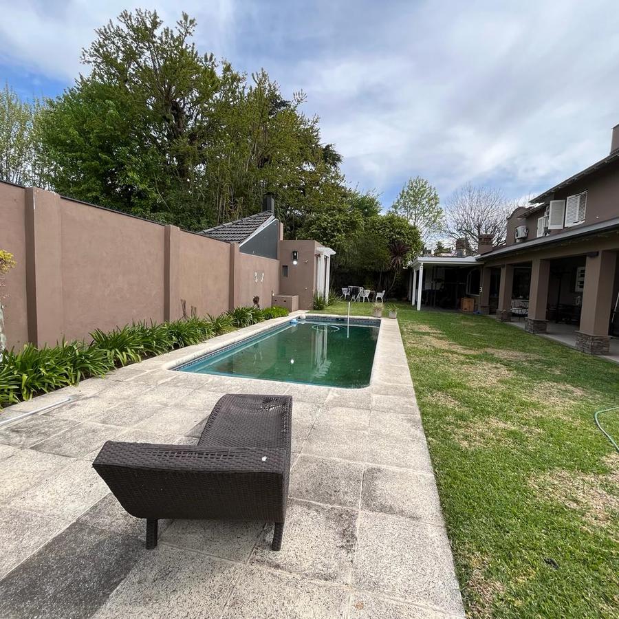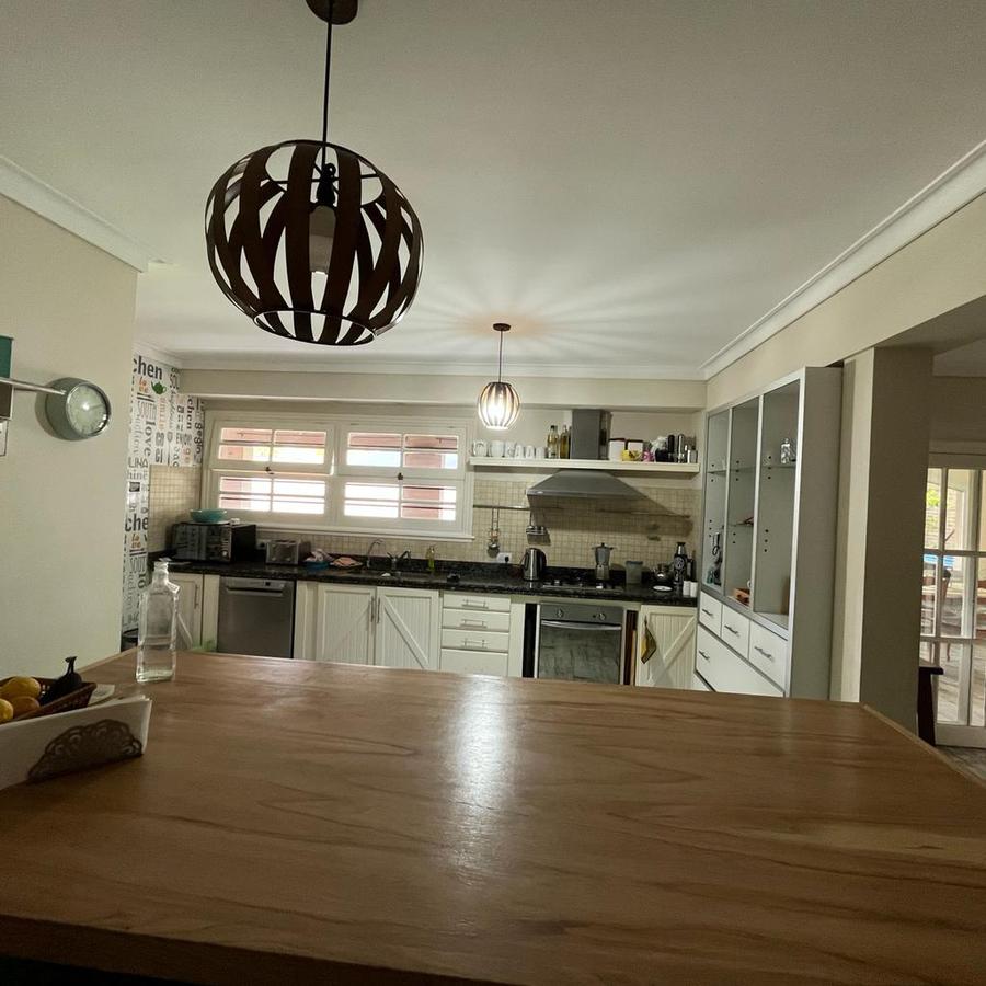 Casa Ubicada en Pasaje Kennedy, una cortada a metros de calle Amenedo entre Uriburu y Cordero en una excelente zona de Adrogue. A la finca emplazada sobre terreno de 560 mts 2 se accede a través de un frente ciego con portón automático con lugar para varios autos. Se ingresa a la vivienda a través de un jardín que se extiende a lo largo del lateral de la casa y un bonito porche. Dentro de la casa un luminoso living con vista al parque y a la piscina. A continuación una amplia cocina con isla desayunadora que también ventila al parque, un toilette, un living intimo conectando que deriva al comedor diario incorporado al quincho con parrilla con salida al parque
