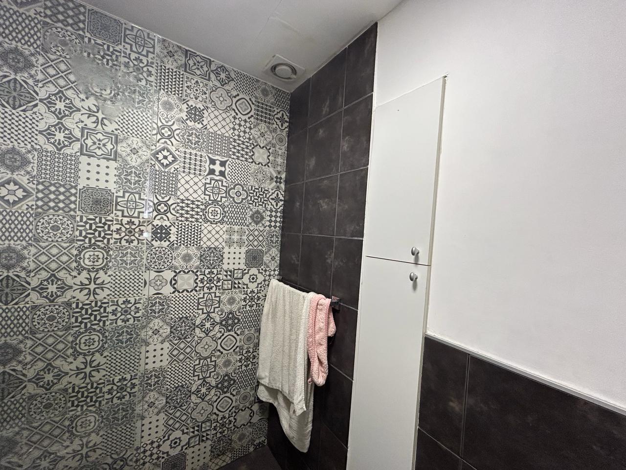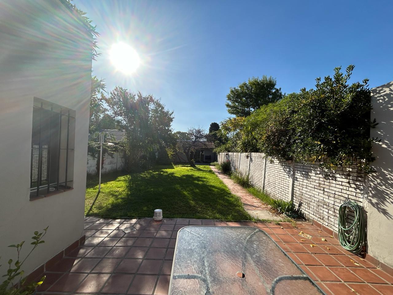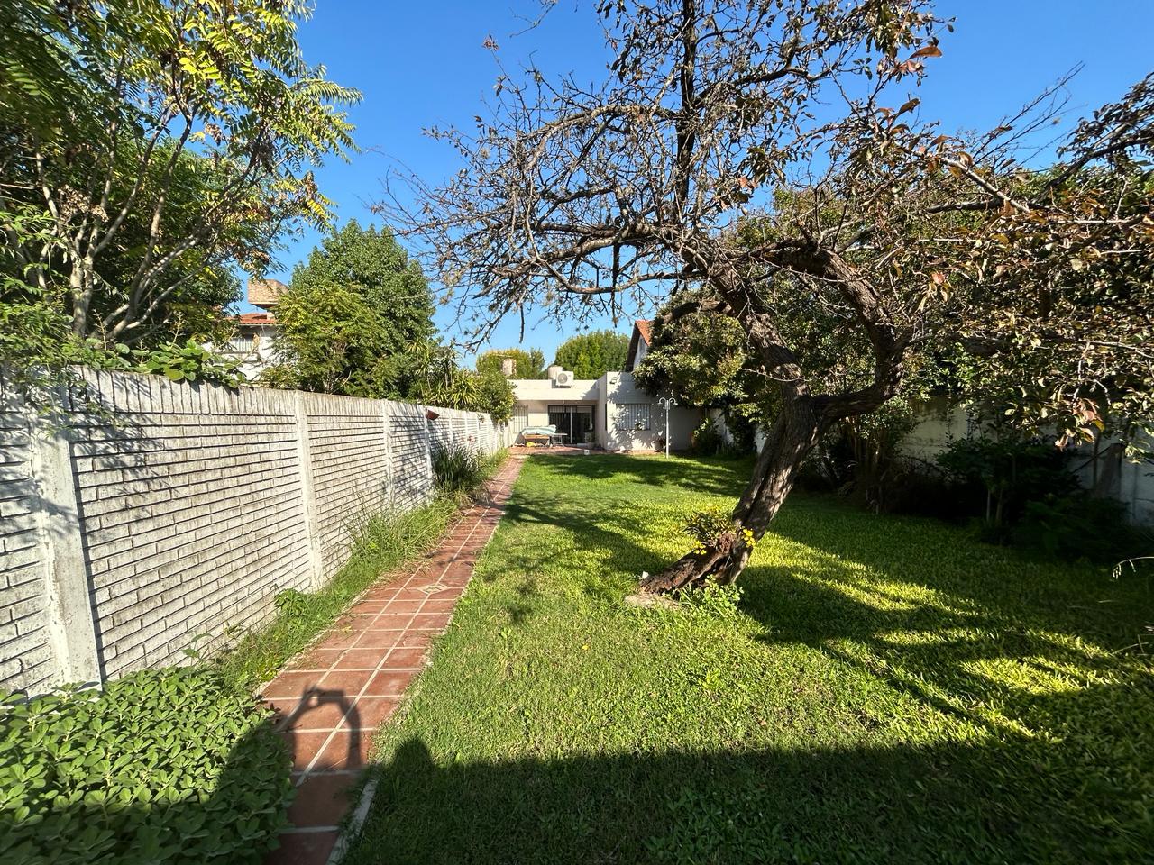 Quincho al fondo: sup. Cubierta 35m aprox. Con puerta ventana de aluminio. Techo de teja. Estar + habitación. Baño sin terminar.