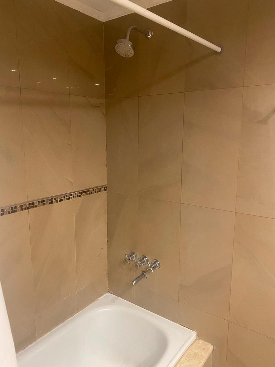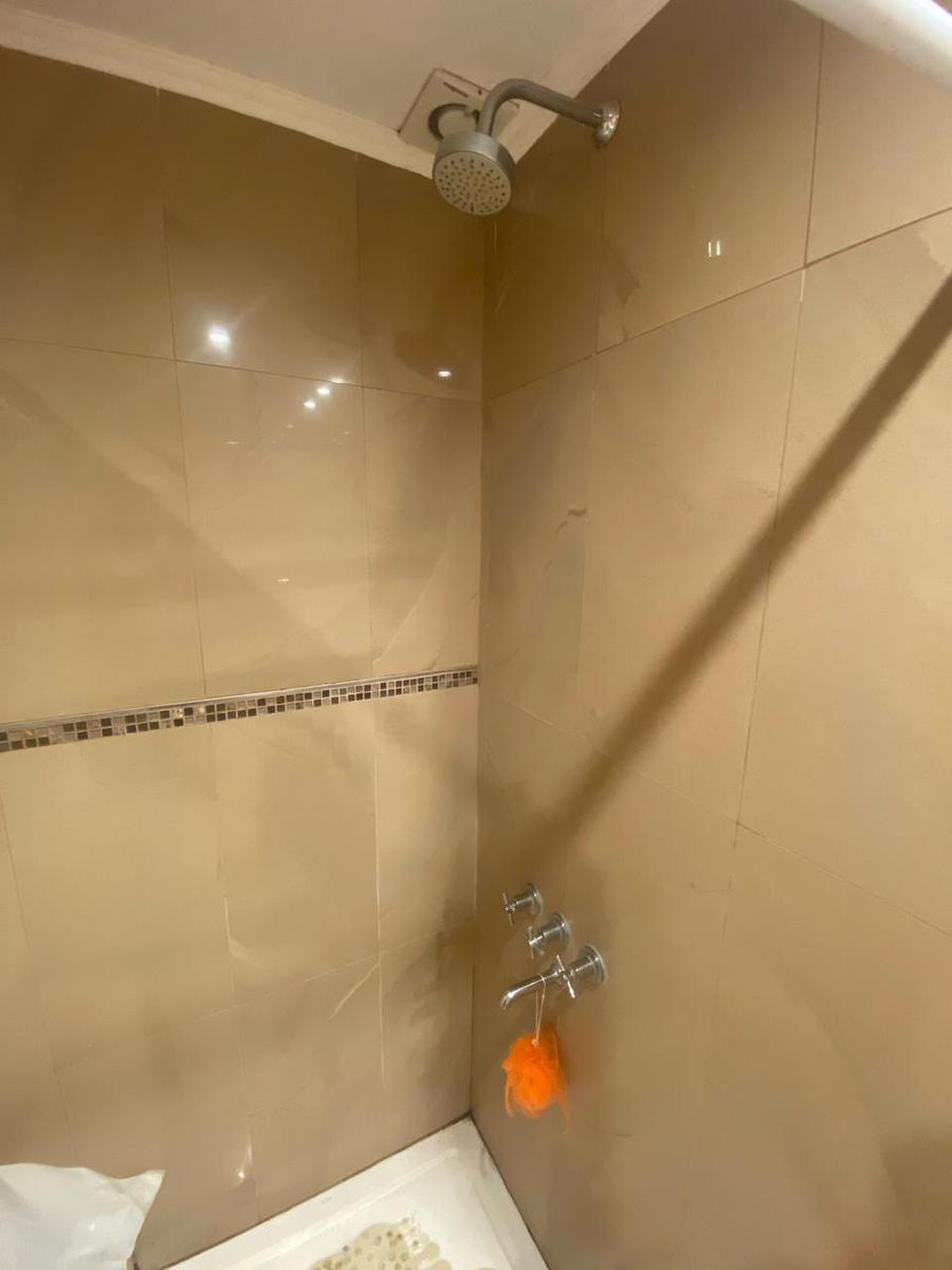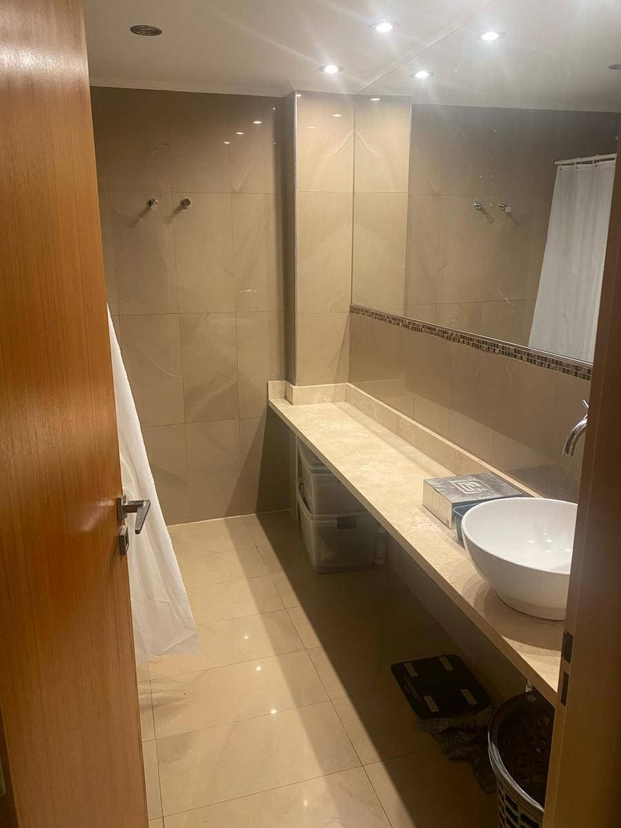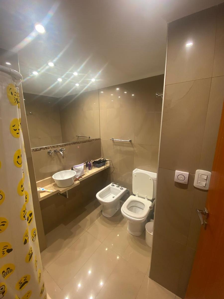 DOMITORIO PRINCIPAL: 1 plafón de 4 luces led, 2 apliques de 2 luces led, 1 puerta al frente con cortina roller blackout blanca, vestidor con 1 plafón de 4 luces led y baño completo con mesada de mármol con 1 vasija color blanca, 1 espejo de 2.60 x 1.20mts amurado a la pared, inodoro con mochila y tapa de madera, bidet, sector de bañera y 1 motor extractor de vapor.