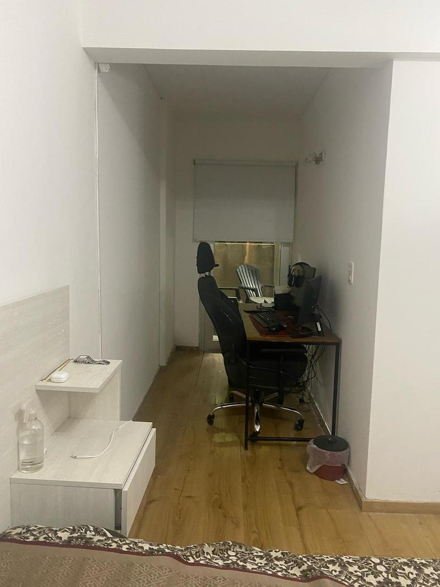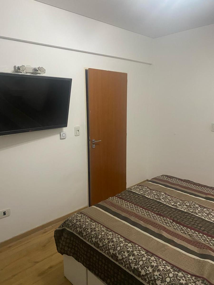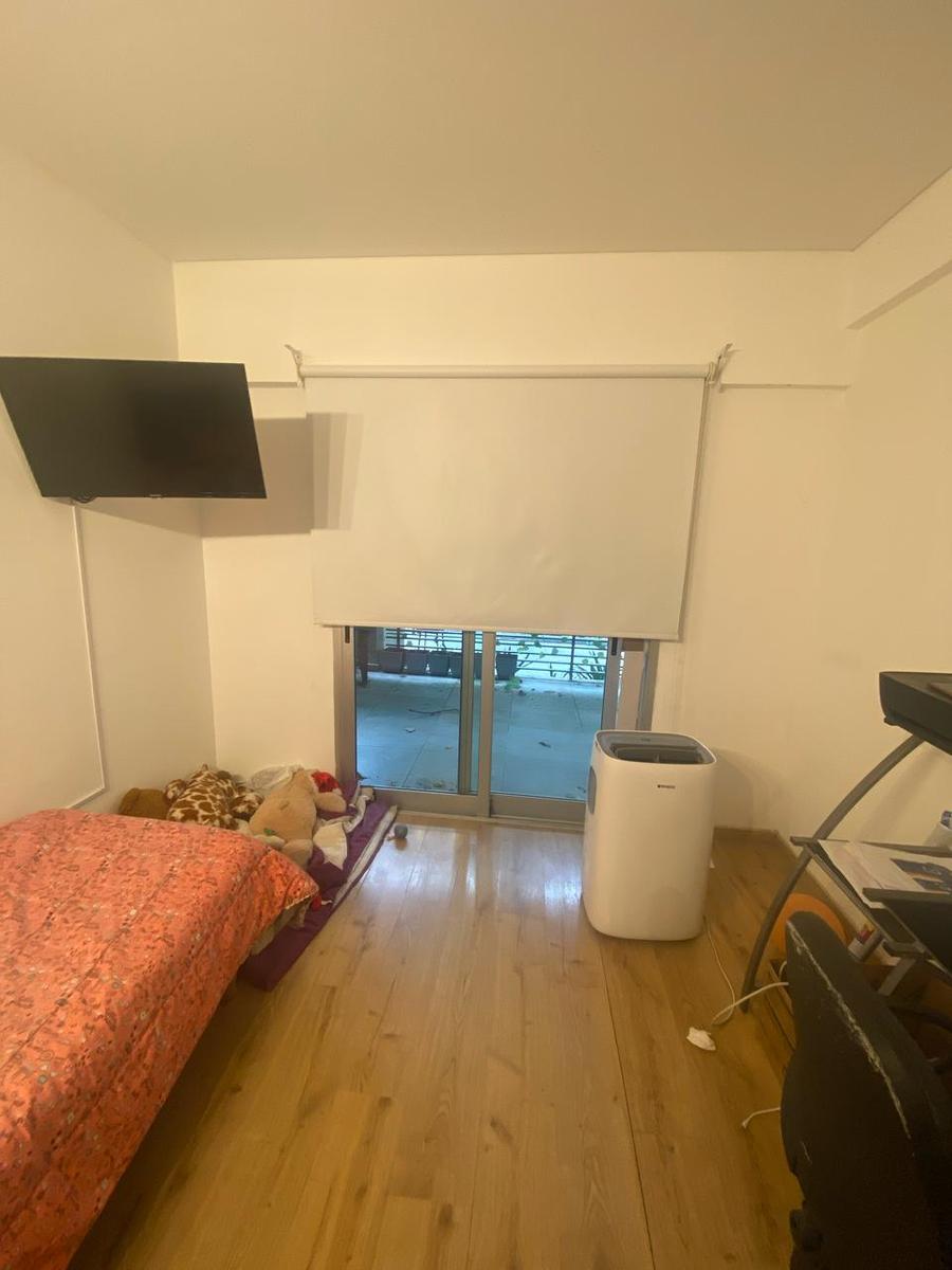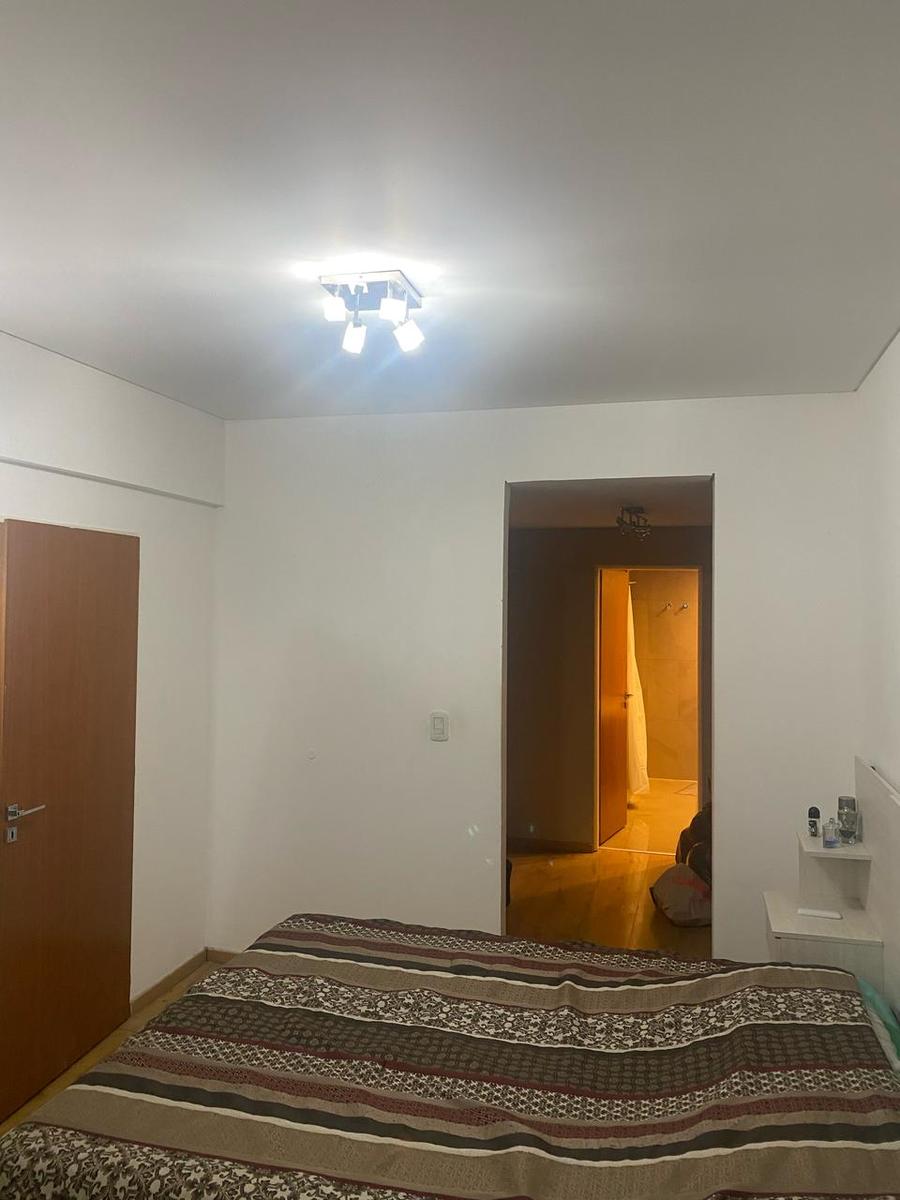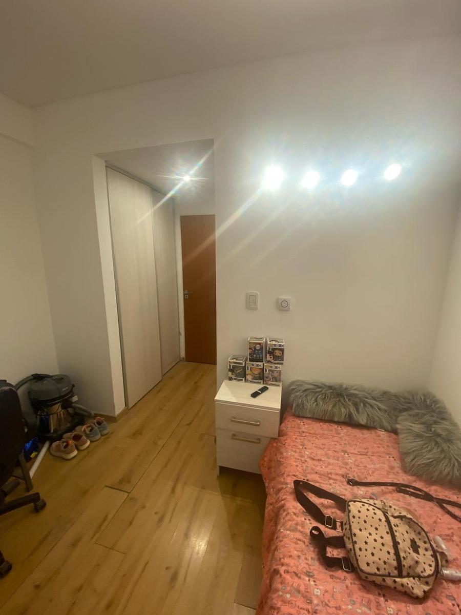 DORMITORIO: con placard, 1 aplique con 4 luces led, 1 puerta balcón con 1 cortina roller blackout blanca.