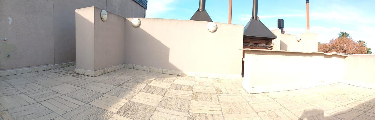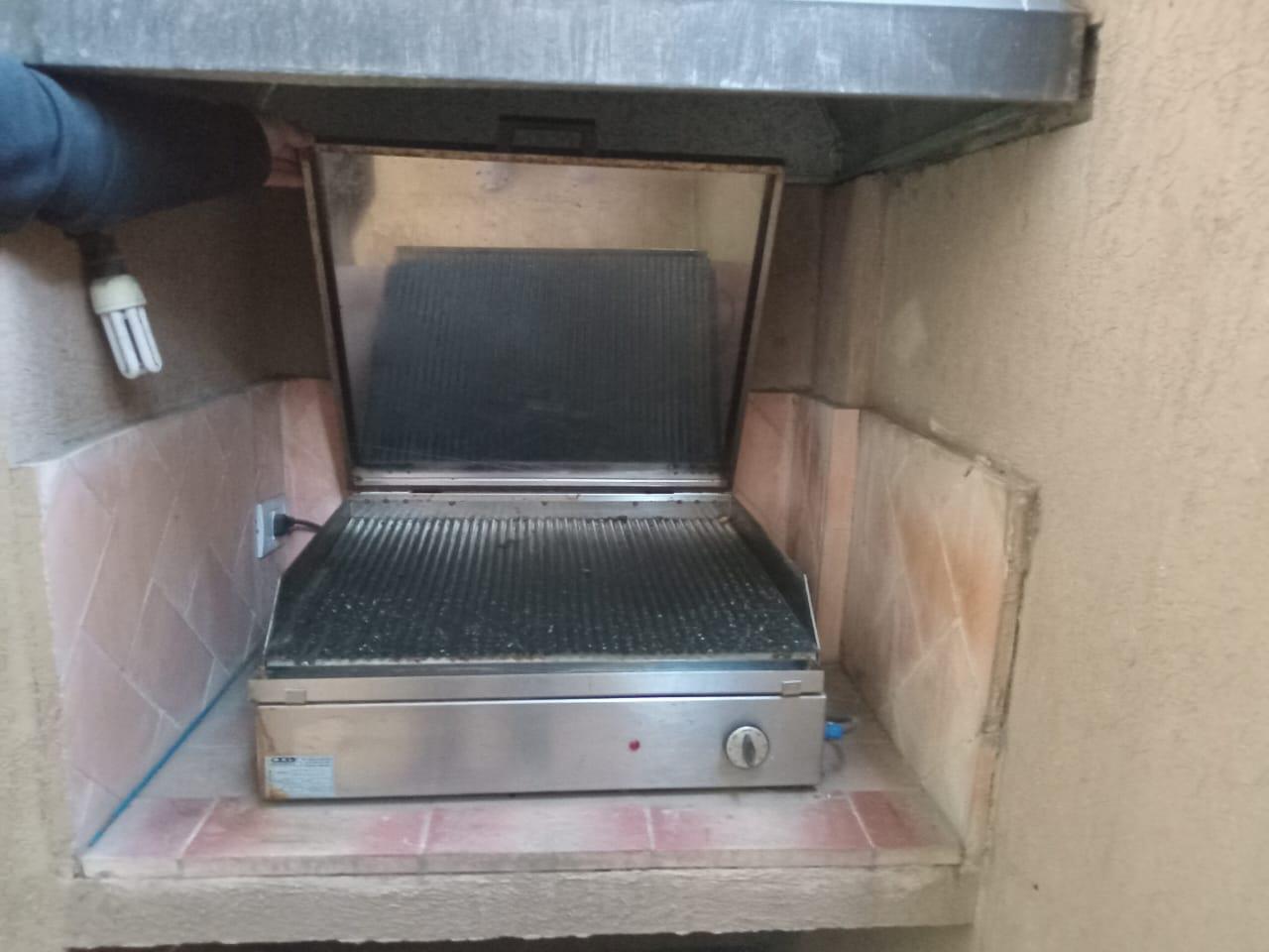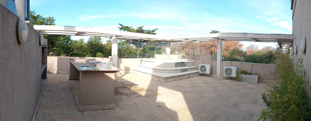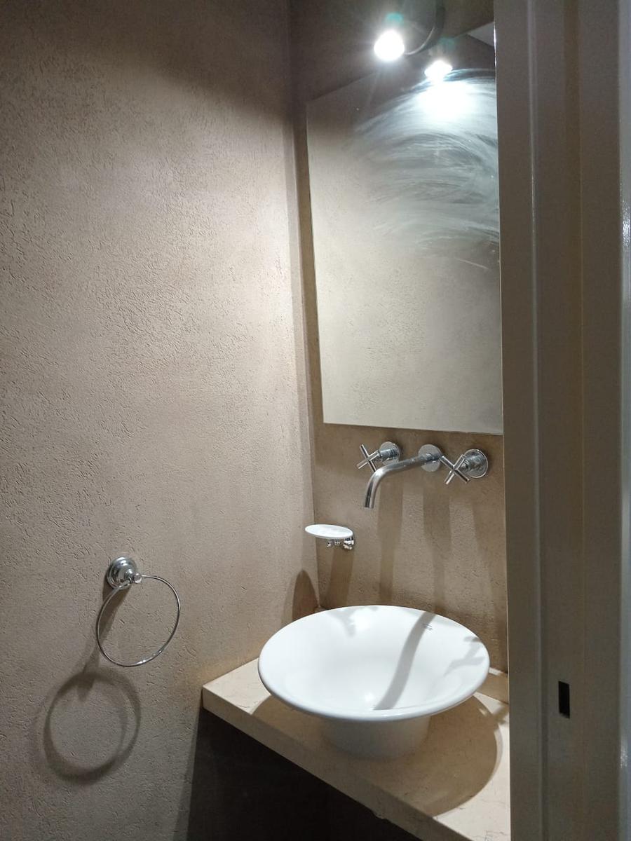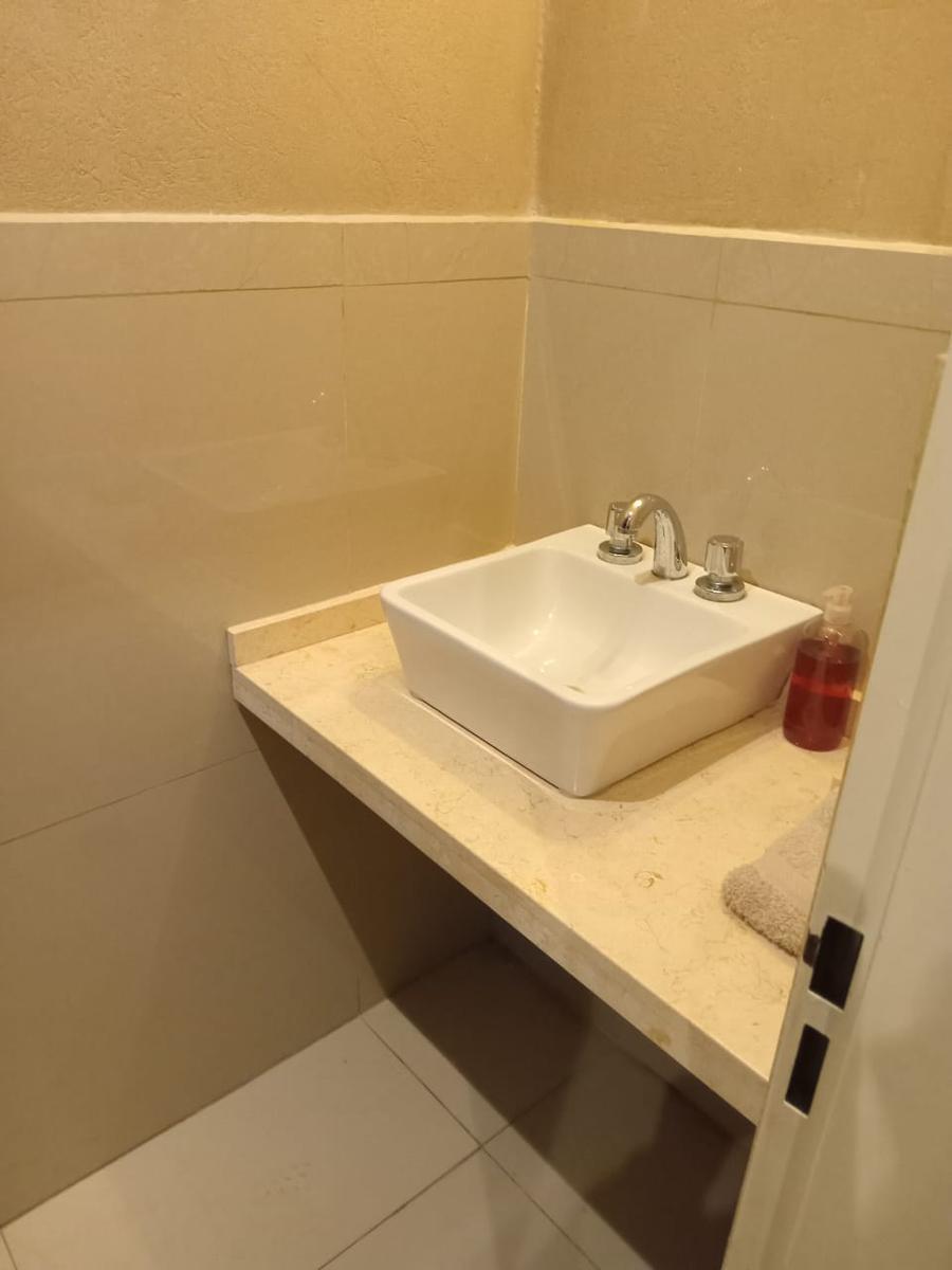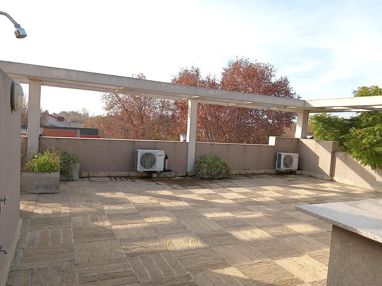 Abajo cocina comedor y sala en un ambiente con aire acondicionado,patio con parrilla y asador eléctrico y baño.