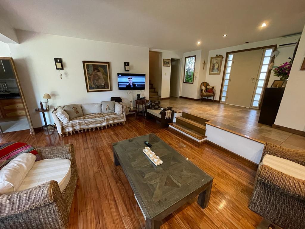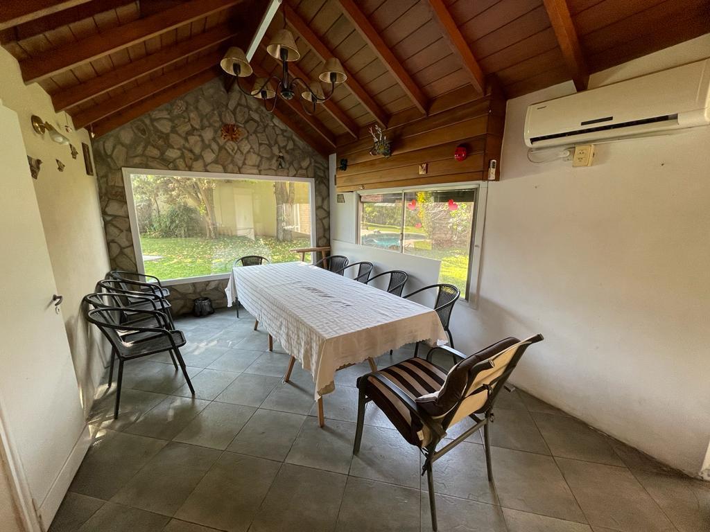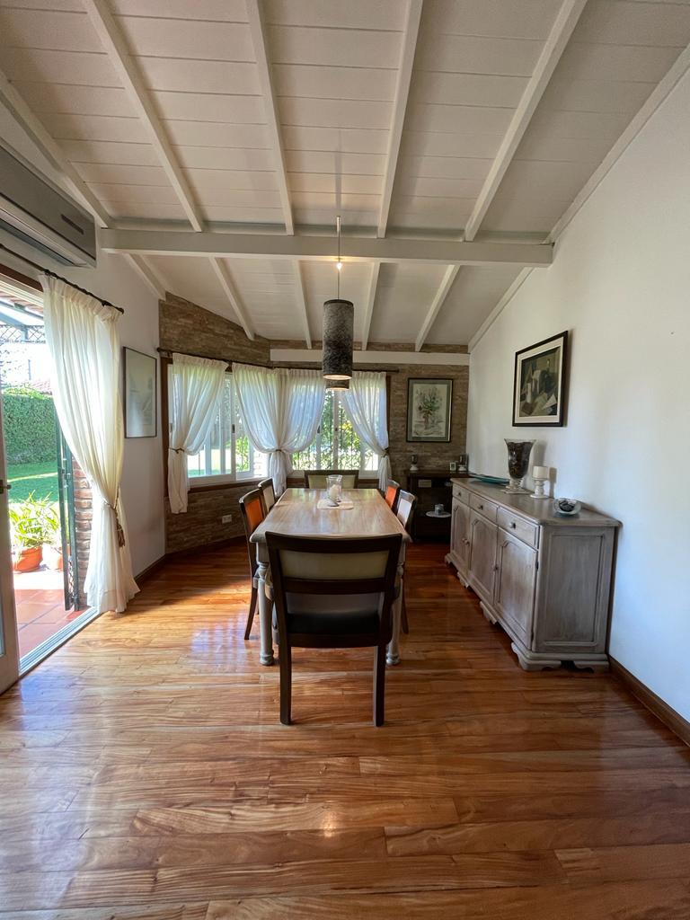 PLANTA BAJA: LIVING, COCINA COMEDOR, TOILLETE DE RECEPCION, DOS DORMITORIOS, BAÑO COMPLETO, COCHERA PARA VARIOS AUTOS, PILETA DE MATERIAL CON VENECITA FILTRO Y CLIMATIZACION.