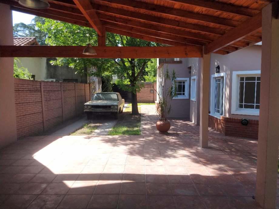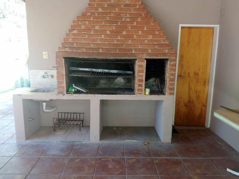 Afuera quincho semicubierto con parrilla, baño y lavadero y entrada pasante para varios vehículos con portón automatizado.