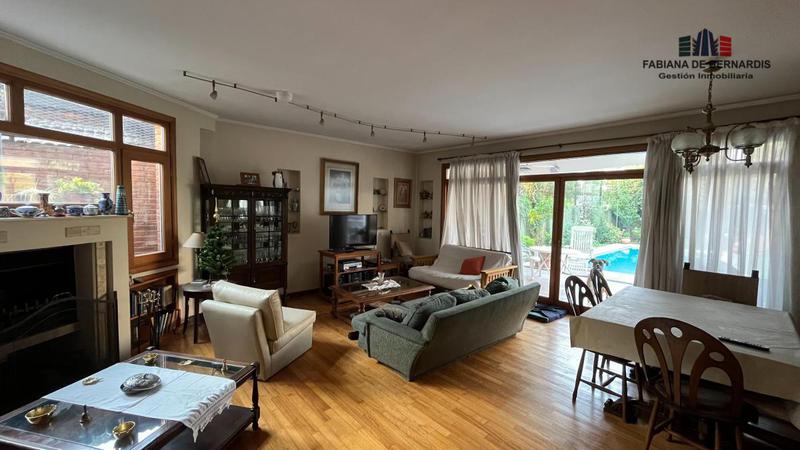 Planta baja cochera en jardín, Cochera cubierta para 2 vehículos, hall de entrada living comedor con amplios ventanales con vista al parque, cocina con alto y bajo mesada con todos los artefactos, lavadero individual, 4 habitaciones , 1 habitación en suite con baño completo y ducha escocesa, 4 Baños, pequeño altillo, parque en el fondo con parrilla y piscina